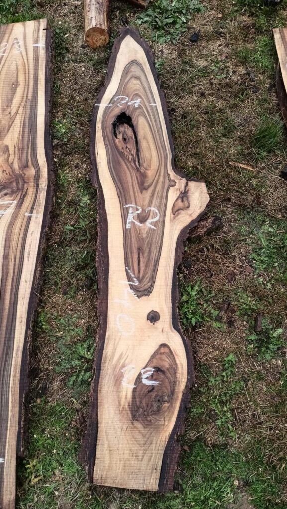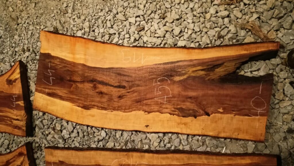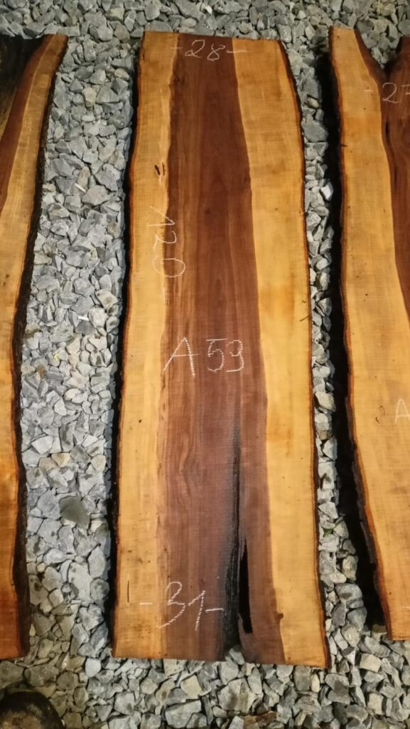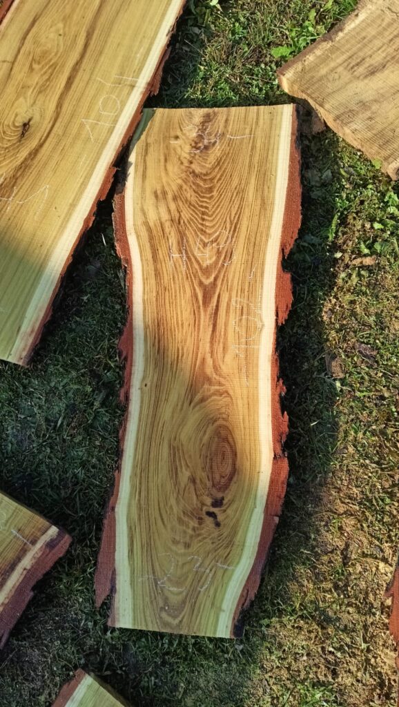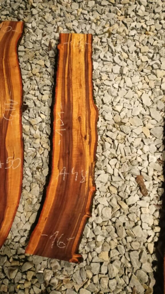 Pracujemy na wielu gatunków drewna – od gatunków o bardziej spokojnym rysunku jak dąb – do bardziej zróżnicowanych jak wiąz, akacja, jesion, orzech, po gatunki egzotyczne typu Suar czy Wenge.